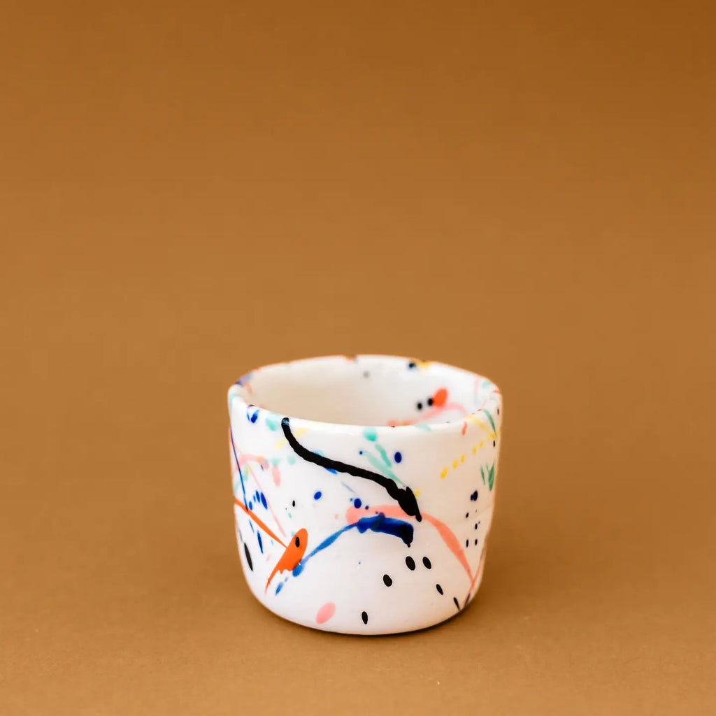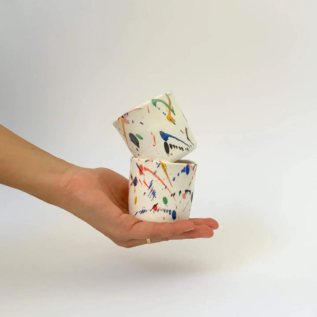Porcelain mug with colorful splash. Your coffee will never be the same anymore :) The glazes are food safe and can go in the dishwasher and microwave - but hand washing is much kinder!